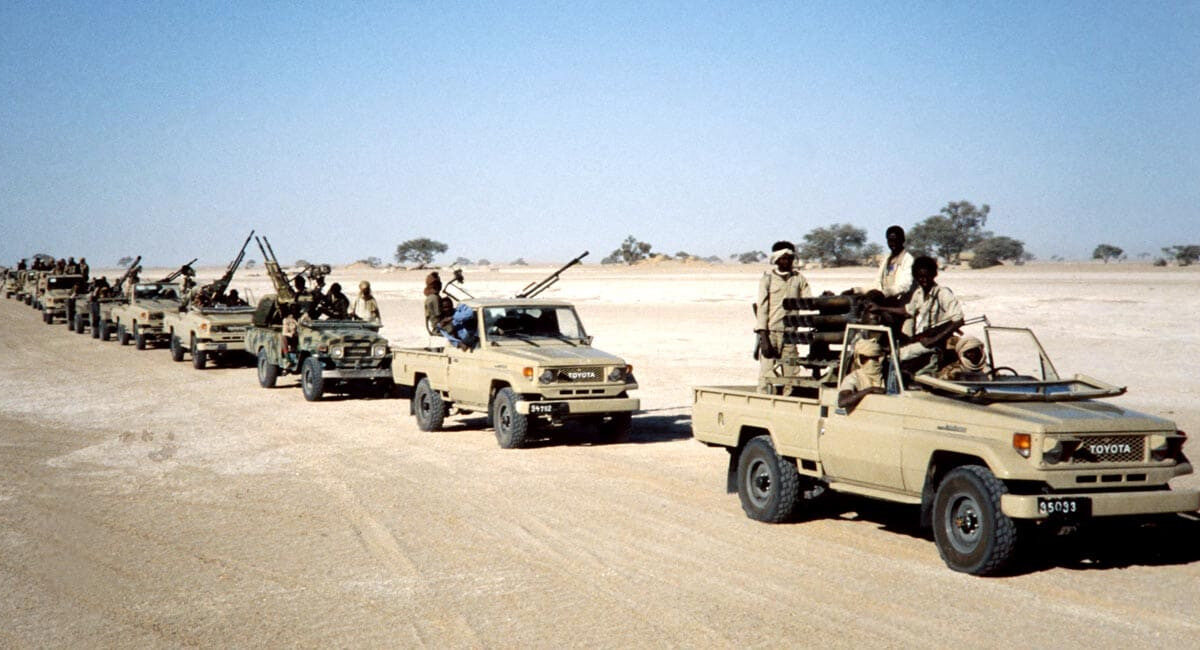 പോർവിമാനങ്ങളും ടാങ്കുകളുമായി എത്തിയ കരുത്തുറ്റ സൈന്യത്തിനെതിരെ ടൊയോട്ട പിക്കപ്പുകളുടെ കരുത്തിൽ ഒരു ചെറുരാജ്യത്തിന്റെ വിജയഗാഥ; ലോക സൈനിക ചരിത്രത്തിൽതന്നെ വേറിട്ട അധ്യായമായി രേഖപ്പെടുത്തിയ ചാഡ് – ലിബിയ യുദ്ധം. ഭൂമിക്കു വേണ്ടിയുള്ള തർക്കത്തിനപ്പുറം ദേശീയ സ്വാതന്ത്ര്യത്തിനായുള്ള പോരാട്ടം, ഗറില തന്ത്രങ്ങളുടെ അദ്ഭുതകരമായ വിജയം, സൈനിക ചരിത്രത്തിലെ വിപ്ലവകരമായ വഴിത്തിരിവ് എന്നീ നിലകളിലാണ് ആ ‘ടൊയോട്ട യുദ്ധം’ ഓർമിക്കപ്പെടുന്നത്. ഫ്രഞ്ച് കോളനിയായിരുന്ന മധ്യ ആഫ്രിക്കൻ രാജ്യമായ ചാഡ് 1960ലാണ് സ്വതന്ത്രമായത്. എന്നാൽ ആഭ്യന്തര കലഹങ്ങളും ദാരിദ്ര്യവും രാജ്യത്തിന്റെ വളർച്ചയ്ക്ക് വിഘാതമായി. 1963ൽ രാഷ്ട്രീയ പാർട്ടികളെ നിരോധിച്ചതോടെ രാജ്യത്ത് പൊട്ടിപ്പുറപ്പെട്ട അക്രമങ്ങൾ വൈകാതെ പൂർണതോതിലുള്ള ഗറില യുദ്ധമായി പരിണമിച്ചു. ഫ്രഞ്ച് സേനയുടെ ഇടപെടലിൽ ഏതാനും മേഖലകളിലെ സംഘർഷം അടിച്ചമർത്താനായി. അതിനിടെ, ധാതുക്കൾ, യുറേനിയം എന്നിവയാൽ സംപുഷ്ടമായ ചാഡിന്റെ വടക്കൻ പ്രദേശങ്ങൾ (ഔസൂ മുനമ്പ്) പിടിച്ചടക്കാൻ 1969ൽ ലിബിയയിൽ അധികാരത്തിലെത്തിയ മുഅമ്മർ ഗദ്ദാഫി ശ്രമം ആരംഭിച്ചു. ചാഡിലെ വിമതസേനയായ