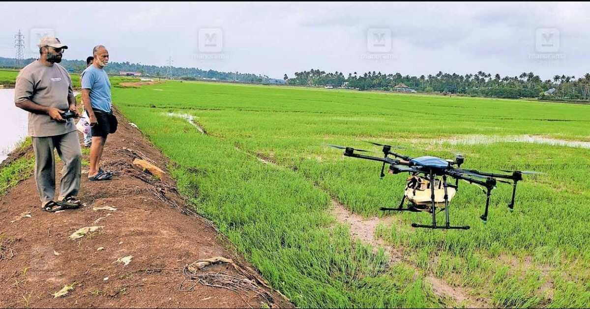 ചേർപ്പ് ∙ പാടശേഖരങ്ങളിൽ കൃഷിപ്പണികൾ ആരംഭിക്കുമ്പോൾ ഞാറ്റുപാട്ടുകൾക്ക് പകരം വിത്തും വളവുമായി പറക്കുന്ന ഡ്രോണുകളുടെ മുരൾച്ചയാണ് വ്യാപകമായി മുഴങ്ങുന്നത്. വിത്ത് വിതയ്ക്കുന്നത് മുതൽ വളം ഇടുന്നതിനും മരുന്ന് അടിക്കുന്നതിനും വരെ ഏറെ ഫലപ്രദമാണ് ഡ്രോണുകൾ. ഒരു ഏക്കറിൽ വിത്ത് വിതയ്ക്കാൻ രണ്ടു മിനിറ്റ് സമയം മാത്രമേ എടുക്കൂ. ഒരു ഏക്കറിൽ വിത്ത് വിതയ്ക്കാൻ 1100 രൂപയും മരുന്നു തളിക്കാൻ 700 രൂപയുമാണ് നിലവിൽ ഈടാക്കുന്നതെന്ന് ഡ്രോൺ ഉടമയും ഓപ്പറേറ്ററുമായ വാടാനപ്പള്ളി സ്വദേശി റഹീദ് ഉസ്മാൻ പറയുന്നു.